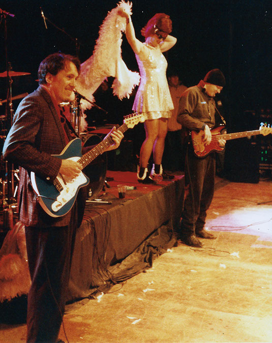 For ten years, Sue was the musical partner of singer/recording artist Candye Kane. They toured France and most of Europe, including Scandinavia, Greece, and Turkey. Their travels also took them to Reunion Island, Canada, Australia, and all over the U.S. Under the moniker Sue "Beehive" Palmer with Candye Kane and the Swingin' Armadillos, she appeared on the Penn & Teller Show and the Roseanne Show, where Sue acted as the talk show band leader (1999). Sue is a featured artist on all four of Kane's CDs under the Antones and Sire labels. Sue's instrumental composition "Beehive" was featured on Kane's "Diva La Grande" CD, and Sue and Candye co-wrote the title tune on Kane's CD "Swango." "Swango" is also featured in the documentary "The Girl Next Door," a biography of porn star Stacy Valentine produced by National Public Radio's Christine Fugat in 2000.