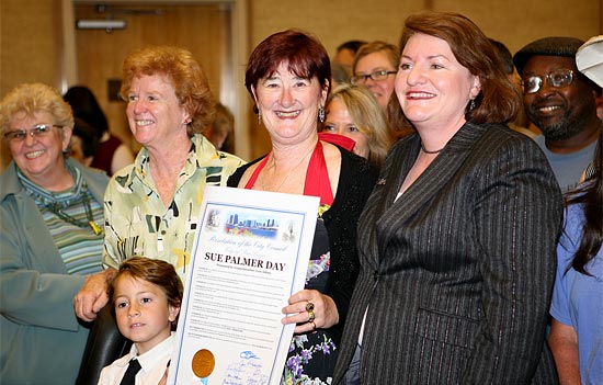 Tuesday, March 25 was declared Sue Palmer Day in San Diego. Sue, with proclamation, and Councilmember Toni Atkins, celebrate the day. BLUSD nominated Sue's "Sophisticated Ladies" CD into the Blues Foundation's worldwide competition where it earned the title of Best Self-Produced CD of 2007.