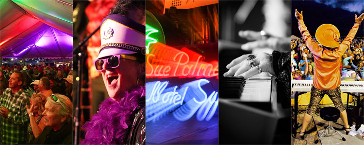 Known world wide as the Queen of Boogie Woogie, Sultana of Swing, and Lady Who Skates on the 88s, Sue Palmer has been a presence on the live music scene in San Diego and the world for over 30 years. She was inducted into the San Diego Music Hall of Fame in 2018, had a day named after her by the city in 2008, and won numerous San Diego Music Awards for her bands and albums. She has recorded over 12 albums under her own name, securing an international award from The International Blues Challenge (IBC) in Memphis for Best Self Produced Album (Sophisticated Ladies). She was the beehive wearing music director and longtime pianist for blues diva Candye Kane, through the 90s, appearing on many of her albums, touring world wide (France, Germany, England, The Czech Republic, Turkey, South Africa, Australia, and more) as well as all over the US and parts of Canada. Sue has also toured Switzerland, Russia, The Netherlands, and Argentina under her own name. Her current Motel Swing Orchestra won the San Diego Music Award for Best Local Recording in 2021 for EP/Vinyl Recording "Movin' Along," and have now released a new 45 vinyl album called "Looking for a Parking Place," featuring 2 original songs, and also a video of the same name. She had a radio show for 3 years on San Diego's local Jazz station KSDS 88.3FM, and now hosts a podcast called "The Motel Swing Happy Hour KSUE San Diego." ( suepalmer.com, Spotify, Google Play, iTunes ) According to Claudia Russell, DJ Extraordinaire on KSDS 88.3FM, "When her heavily jeweled hands hit the 88s, you're in for a ride!" WATCH OUT: YOU may become a slave to the dance floor!! And, at the end of 2023, the San Diego Union Tribune chose "Eight to the Barre," a show combining Sue's Motel Swing Orchestra and the San Diego Ballet, as one of the top Dance Shows of the year!!